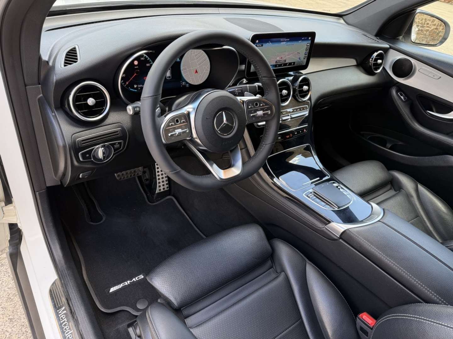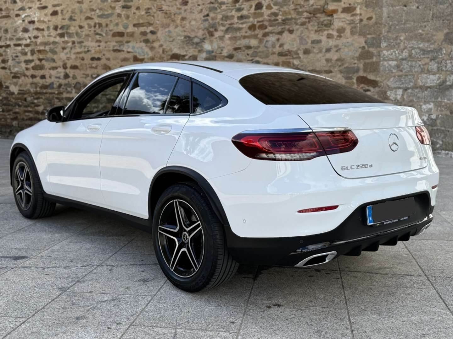 GLC Coupe 220d, color blanco, navegador, Amg line exterieur / amg sportpaket exterieur, Calefacción del asiento delante, Portón trasero con automático sistema de apertura y cierre, Reconocimiento de senales de trafico, Asistente a la conducción: activo asistente de aparcamiento, Llantas de aleación del./post.: 8×19 / 9×19 (amg, 5 radios dobles, negro, brillante) sensores de aparcamiento con cámara trasera, Caja de cambios automática – (9-pasos).
